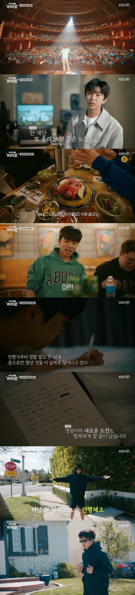 10일 방송된 KBS 2TV '마이 리틀 히어로'(이하 '마리히')에서는 임영웅이 돌비씨어터에서 첫 해외 콘서트 '아임 히어로 인 로스앤젤레스'(IM HERO - in Los Angeles)를 성황리에 마친 후 LA에서 여가시간을 보냈다.