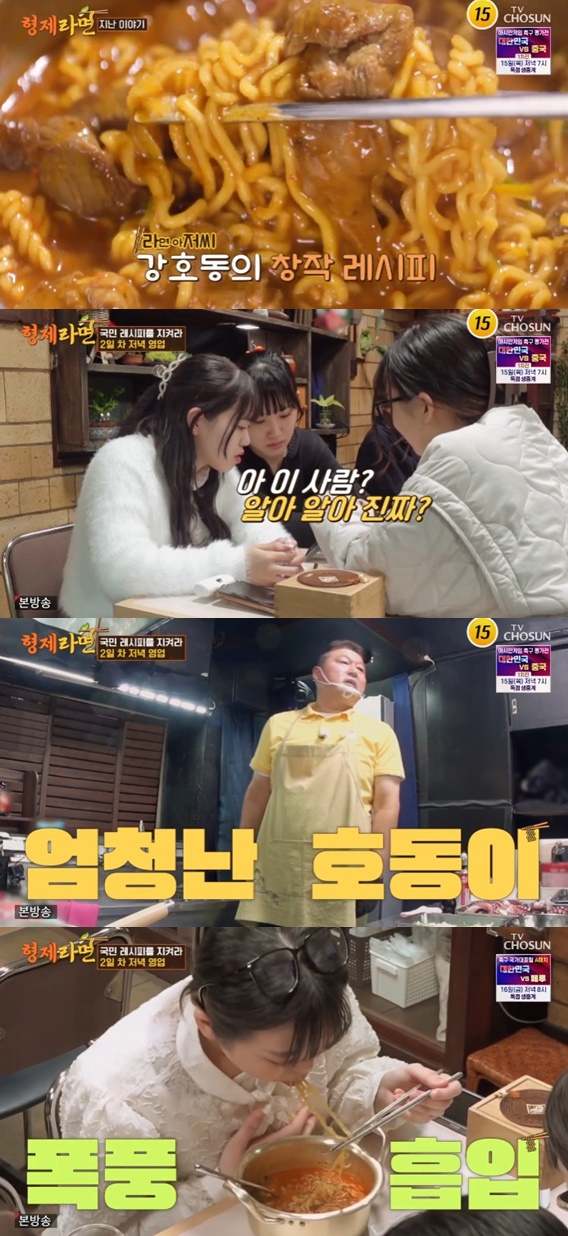 12일 방송된 TV조선 예능 프로그램 '형제라면' 4회에서는 2일 차 저녁 영업에 나선 강호동, 이승기, 배인혁의 모습이 전파를 탔다.