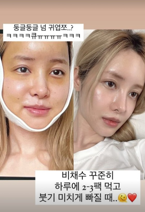 유깻잎은 13일 "둥글둥글 넘 귀엽쪼(귀엽죠)?"라며 성형 후 생긴 부기에도 만족한 모습을 보였다.