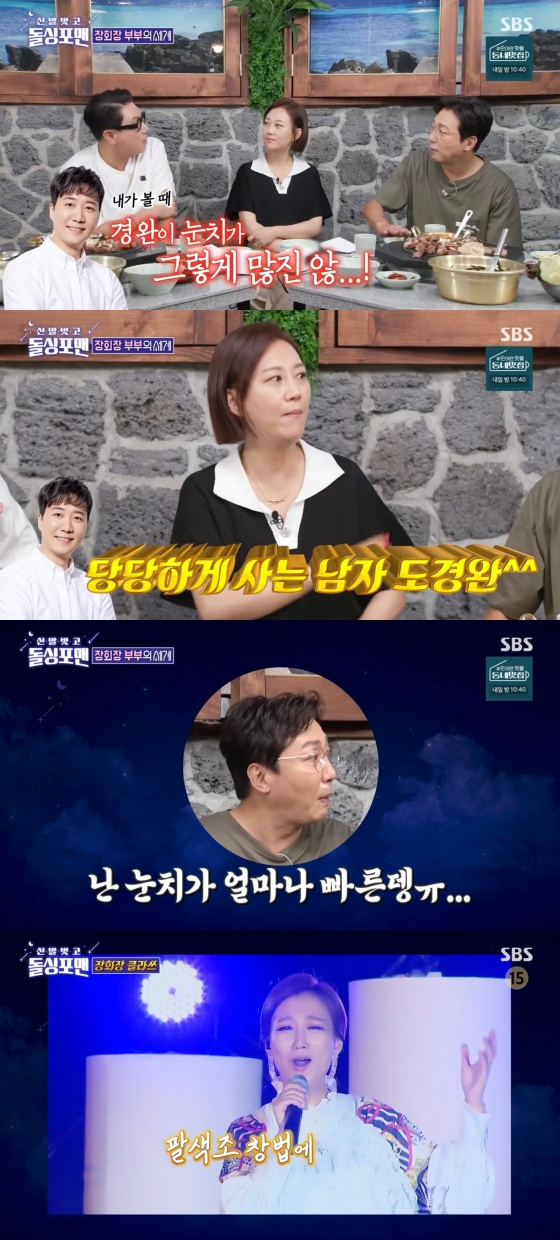 평소 도경완과 친분이 있는 이상민은 "내가 봤을 때는 눈치가 그렇게 많진 않다"라고 폭로했다. 이에 장윤정이 놀라 "어. 맞다"라며 공감했다. 탁재훈은 "그런 이야기 들으니까 더 배가 아프네. 나는 눈치가 얼마나 빠른데"라며 아쉬워했다.