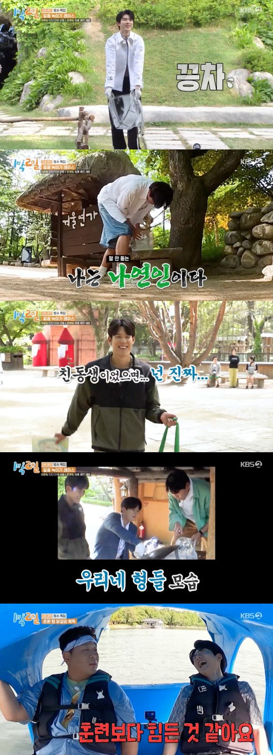 멤버들은 이어 얼음 녹이기 레이스를 펼쳤다. 차준환과 유선호는 복불복에 실패해 두 배 크기의 얼음을 얻게 됐고, 박태환은 팥 찐빵 복불복에 성공해 단숨에 얼음 하나를 녹여 선두를 달렸다. 박태환은 이후 팀원들을 도우려 했으나, 나인우는 해맑은 표정으로 햇빛에 의존해 당혹감을 안겼다. 박태환은 딘딘에 "인우 친구가 좀 허당인 것 같다"더니 결국 "어디갔냐. 빨리 와라"며 언성을 높여 폭소를 자아냈다.