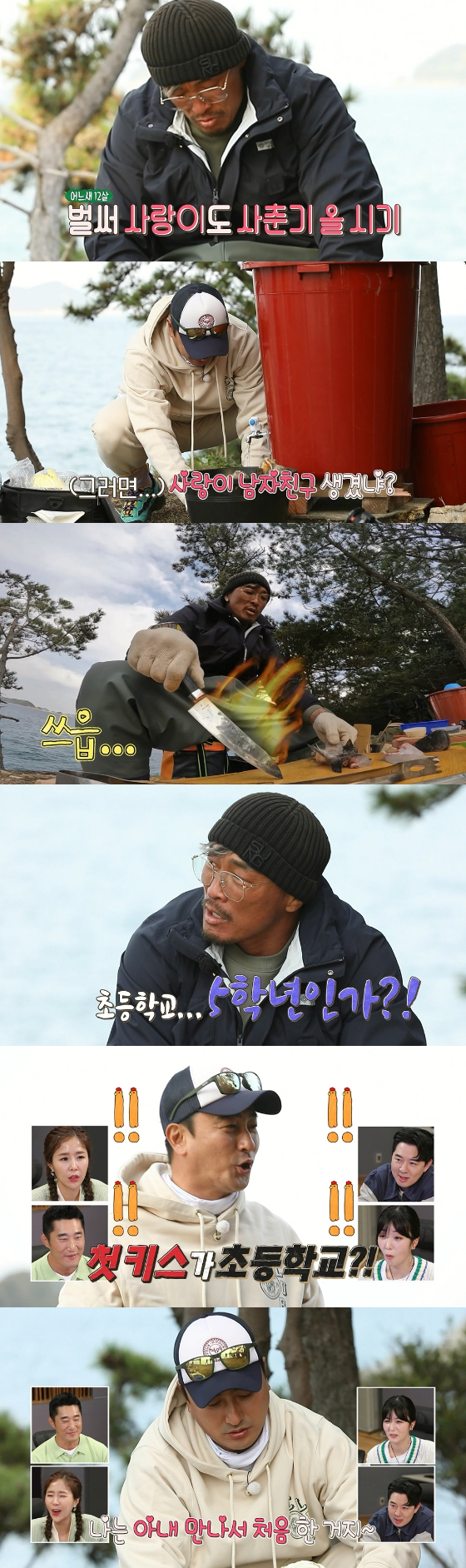 또한 이들은 첫사랑 이야기로 수다를 이어간다고 하는데. 이때 추성훈은 "첫키스는 초등학교 5학년 때, 첫사랑은 초등학교 2학년 때"라고 고백해 무인도를 발칵 뒤집어 놓는다. 반면 안정환은 "내 첫키스 상대는 와이프"라고 사랑꾼 남편의 모범 답안을 내놓아 웃음을 자아낸다.