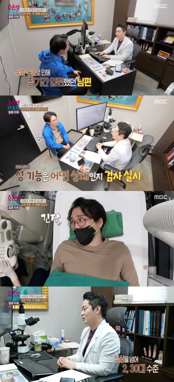 이후 의사는 남편의 혈류량 체크와 초음파검사를 진행했다. 검사가 끝난 후 의사는 남편에 "완전히 정상이다. 정상을 넘어선다. 신체적으로는 문제가 없다. 제가 봤을 때는 대표적인 건 심인성 발기부전이다. 관계는 사람마다 다르고 참 어려운 부분이다. 이 사람이랑 어려워서 그럴 수도 있다. 신체적인 부분은 전혀 문제가 없다"고 진단했다.