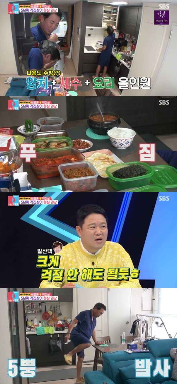 식사를 끝낸 이봉원은 바로 설거지를 하는 깔끔한 면모를 보이는 듯 했으나 시도 때도 없이 다리를 들고 방귀를 뀌어 모두를 폭소케 했다.
