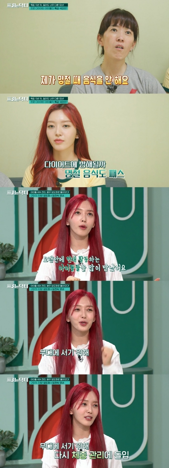 임도화 어머니는 "내가 전생에 나라를 팔아먹은 거 같다. 사람이 고기도 먹고 자장면도 먹고 칼국수도 먹어야 하는데"라며 "내가 명절에 음식을 안 한다. 먹고나면 빼야하는 걸 잘 아니까 언제부터 명절 음식을 아예 안 했다. 안쓰럽다"라고 딸의 아이돌 생활 후 자신에게도 바뀐 부분을 밝혔다.