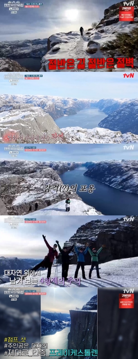 22일 방송된 tvN 예능 프로그램 '텐트 밖은 유럽 - 노르웨이 편' 7회에서는 이번 노르웨이 편의 최대 관전 포인트 중 하나로 꼽혔던 프레이케스톨렌 트레킹 도전기가 그려졌다.