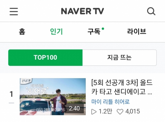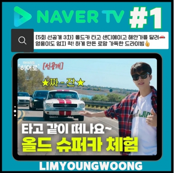 지난 23일 '마이 리틀 히어로' 네이버TV 채널에 공개된 '올드카 타고 샌디에이고 해안가를 달려~영웅이도 엄지 척! 하게 만든 로망 가득한 드라이빙' 영상은 공개 직후 네이버TV TOP100 1위에 올랐다.