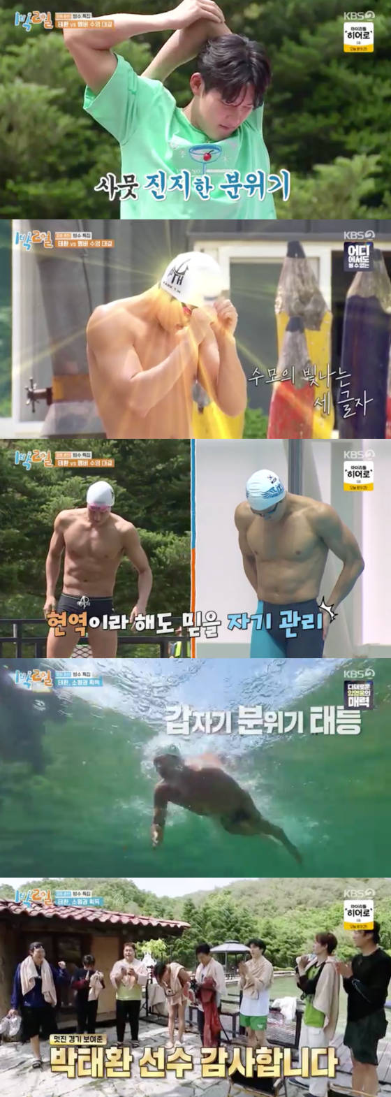 '1박2일' 전 국가대표 수영 선수 박태환이 멤버들과 수영 대결을 펼쳤다.