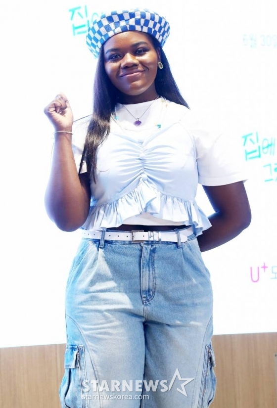 방송인 파트리샤가 26일 오후 서울 용산구 LG유플러스 본사에서 진행된 예능 '집에 있을 걸 그랬어' 제작발표회에 참석해 포즈를 취하고 있다. '집에 있을 걸 그랬어'는 해외여행이라고는 한 번도 가 본 적 없는 'K-남매' 조나단&파트리샤가 ‘마성의 남자’ 김해준과 함께 떠나는 힐링인 듯 아닌 듯 헷갈리는 여행 프로젝트다. 오는 30일 U+모바일tv에서 공개된다. 2023.06.26 /사진=김창현 기자 chmt@