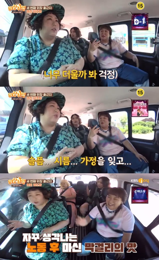 이에 신기루는 "잠시 잊는 거다. 슬픔, 시름, 가정을 다 잊는 거다"라고 말했다. 이어 김민경이 "남편이랑 싸웠니"라고 묻자 신기루는 "항상 싸운다"고 답했다.