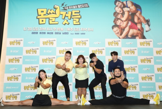 29일 오후 서울 마포구 상암 스탠포드호텔 볼룸홀에서 MBC에브리원 예능프로그램 '몸쓸것들:S급 피지컬의 챌린지 100'(이하 '몸쓸것들') 제작발표회가 열렸다. 황교순PD, 김민경, 조진형, 마선호, 남경진, 장은실이 참석했다.