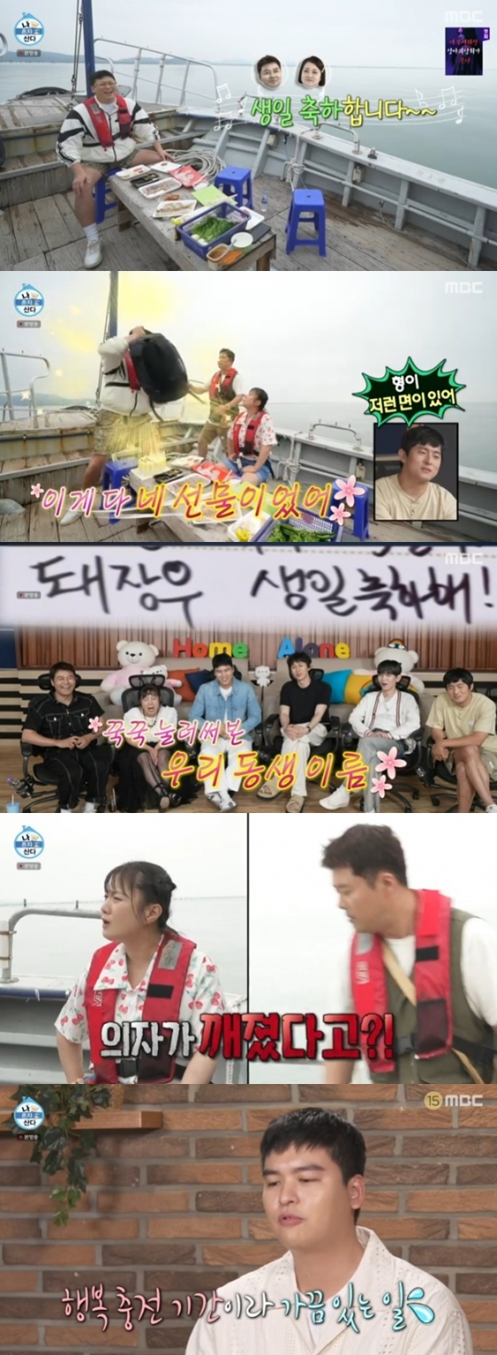 전현무는 박나래에 질세라 "이게 다 네 선물이다"며 이장우에 커다란 가방을 건넸다. 또 직접 쓴 손편지로 감동을 자아냈다. 이어 배낭 속에서 갖가지 그릇과 해골 앞치마를 꺼내 이장우에 선물하며 '팜둥이(팜유 쌍둥이)'에 대한 애정을 드러냈다. 그런데 선물을 받던 도중 이장우의 의자가 내려앉아 멤버들을 폭소케 했다.