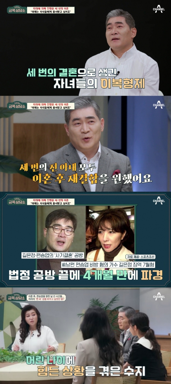 지난달 30일 방송된 채널A '오은영의 금쪽 상담소'에서는 편승엽과 자녀들의 출연해 다양한 이야기를 나눴다. 세 번의 이혼과 10년의 공백기를 가졌던 편승엽은 "내가 원해서 이혼한 적은 없다"고 밝혔다.