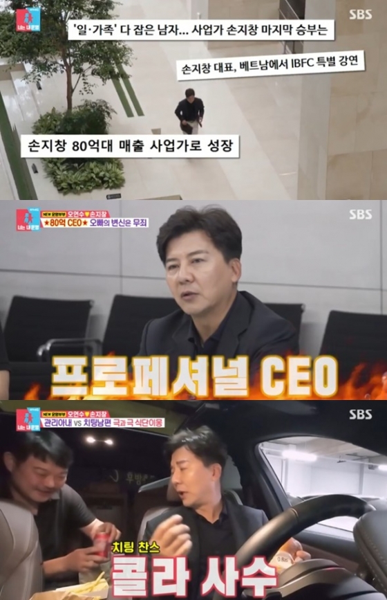 이어 두 사람의 일상이 공개됐다. 손지창은 아침 7시에 먼저 기상해 오연수가 미리 손질해 놓은 채소와 과일을 갈아먹고 풀 착장을 한 후 출근준비를 마쳤다. 이후 전시 행사 기획 사업을 24년 째 이어온 손지창은 80억대 매출 사업가의 위엄을 보여주며 미팅을 이어갔다.