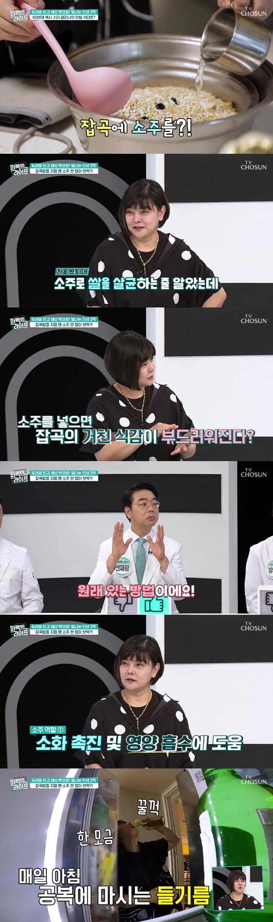 그러자 전문가는 "실제로 있는 방법"이라며 "잡곡 자체가 가공이 덜 된 거라 소주가 독성있는 성분을 중화시키는 작용을 한다. 그리고 소화를 촉진시키고 흡수를 돕는다"고 설명했다.
