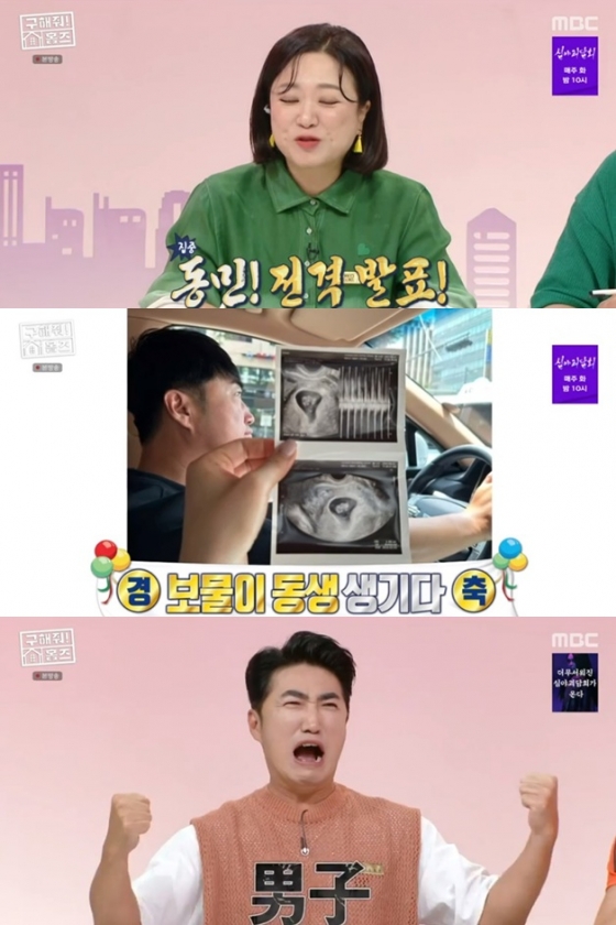 이에 장동민은 쑥스러운 표정으로 "하나보다 둘이 좋다. 최초로 말씀을 드리는 거다. 보물이 동생이 생겼다"라며 발표해 멤버들에 축하를 받았다.