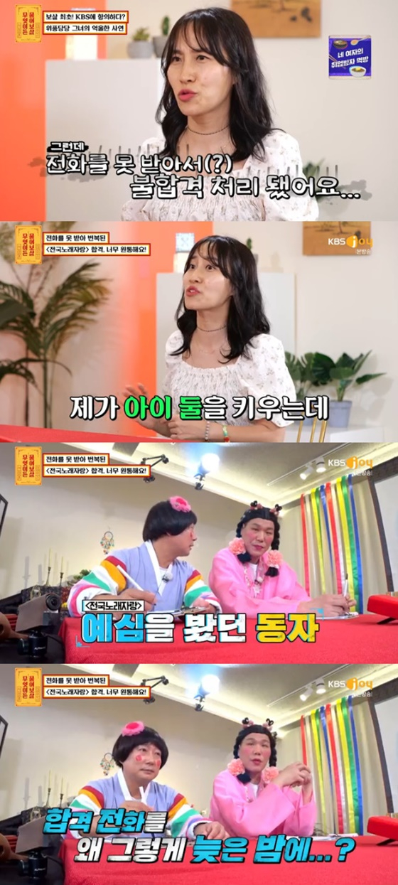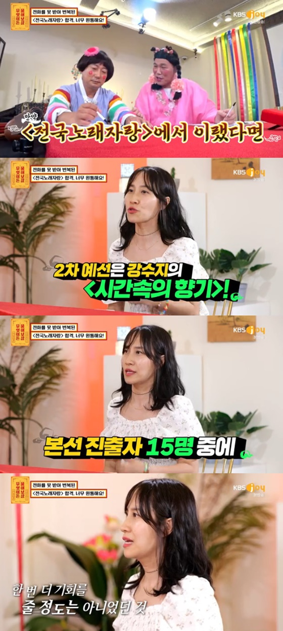 이날 김미일 씨는 KBS 1TV 음악 프로그램 '전국노래자랑'의 본선에 800대15로 합격했으나 방송에 출연하지 못하게 된 사연을 털어놨다.