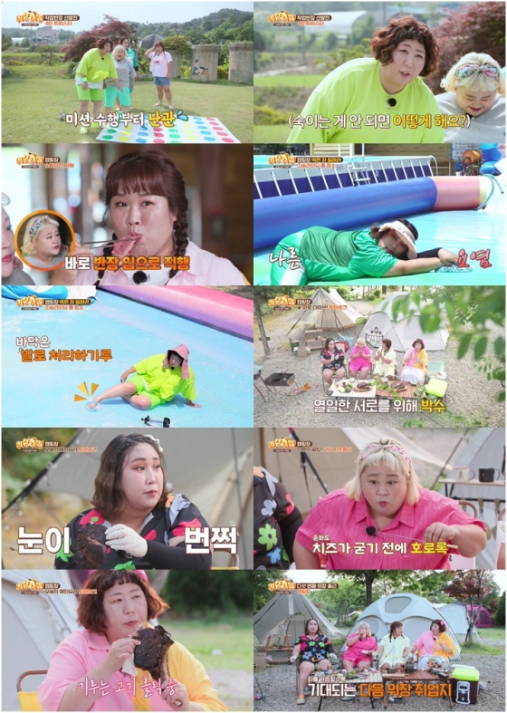 이날 여주의 한 캠핑장에 모인 4인방은 '고용주'인 캠핑장 사장님의 격한 환대를 받은 뒤, 작업반장을 뽑았다. '맏언니' 김민경이 5대 작업반장에 등극한 가운데, 이들은 사장님이 준비한 숯가마 브런치를 거하게 대접받았다. 이때 김민경은 작업반장의 권력(?)을 앞세워 베이컨을 독식했는데, 참다 못한 신기루는 "여기 프리미엄 아웃렛 있는 거 아시죠?"라고 명품 로비(?)를 가동했다. 이에 풍자는 "그 돈이면 삼겹살 사먹는 게 낫지 않나?"라고 받아쳐 대환장 케미를 분출했다.