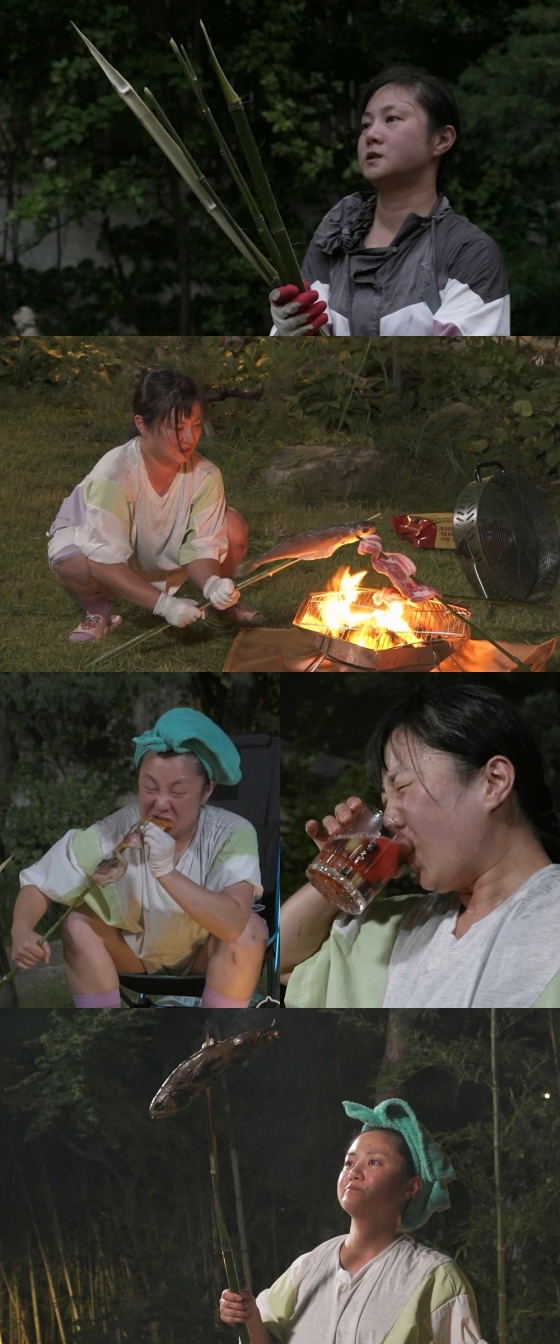 '나 혼자 산다' 박나래가 통삼겹살과 민어 죽창 꼬치부터 '취화채(?)'까지, 잡초와의 전쟁을 끝낸 후 마당에서 나 홀로 '나래 캠핑'을 즐기며 행복을 충전한다.