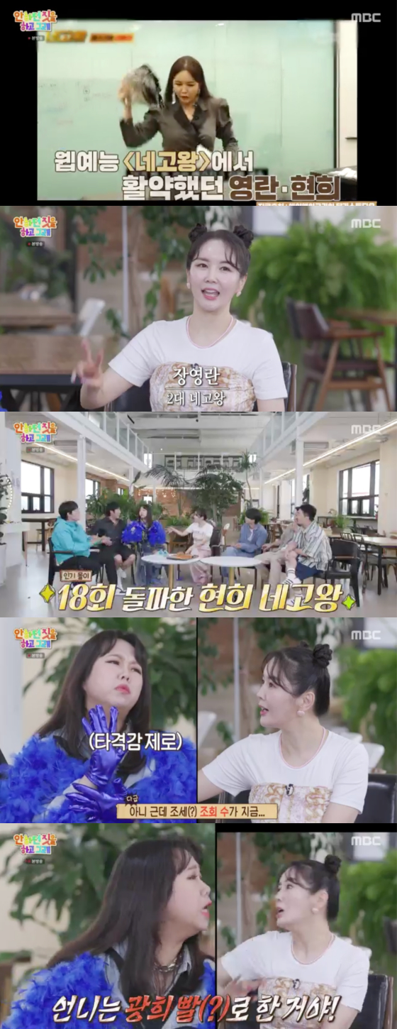 홍현희와 장영란은 웹예능 '네고왕'에 각각 5대, 2대 네고왕으로 출연해 사랑받았다는 공통점이 있었다. 장영란이 선배로서 자부심을 뽐내려던 와중, 홍현희는 "근데 언니는 12회로 끝났지 않냐. 저는 지금 18회"라 밝혀 웃음을 자아냈다.