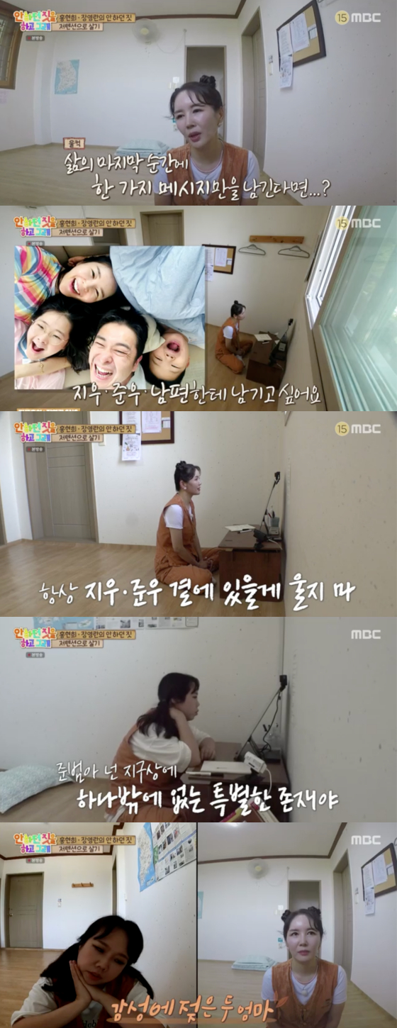 홍현희와 장영란은 이후 홀로 거울 앞에 앉아 벽에 붙은 질문들에 답하는 시간을 보냈다. 두 사람은 "삶의 마지막 순간에 한 가지 메시지만을 남긴다면?"이라는 질문 앞에 자연스레 가족들을 떠올렸다. 장영란은 남편과 두 자녀 지우, 준우에게 "항상 곁에 있겠다. 울지 마 사랑해"라고, 홍현희는 아들 준범에게 "넌 지구상에 하나밖에 없는 특별한 존재다. 뭘 하지 않아도 사랑스럽다"고 전해 뭉클함을 자아냈다.