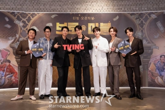 17일 오전 티빙 오리지널 예능 프로그램 '브로 앤 마블' 제작발표회가 온라인으로 진행됐다. 행사에는 이홍희 PD를 비롯해 가수 겸 배우 이승기, 배우 유연석, 그룹 슈퍼주니어의 규현, 방송인 지석진, 조세호, 그룹 세븐틴의 조슈아, 호시가 참석했다. 배우 이동휘는 일정상 불참했다.