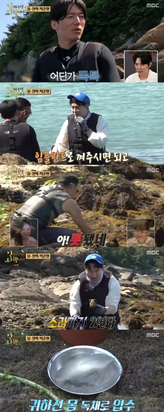 붐은 '안다행' MC답게 처음으로 돌멍게, 소라까지 건지며 감탄을 자아냈다. 이와중에 장혁은 불가사리를 보며 "닭발 아니냐. 되게 닭발같이 생겼다"며 엉뚱한 모습을 보여 웃음을 유발했다.