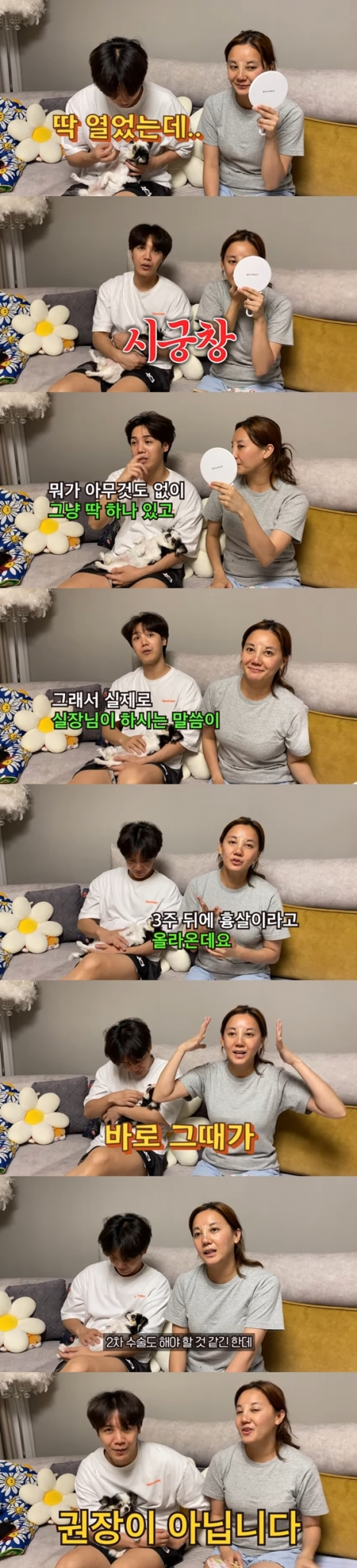 미르는 누나 고은아의 수술 당시 상황에 대해 병원 관계자로부터 들은 얘기를 전했다. 그는 "우선 잘 됐다. 그런데. 딱 열었는데, 아닌 말로 시궁창이었다. 뭐가 아무것도 없고, 그냥 딱 하나 있고. 조직은 다 죽어있고, 엉켜있고. 너무 힘든 수술이었다고 했다"라면서 "실제로 실장님이 하신 말이 원장님이 이렇게 오래 수술한 거 처음 봤다고. 그래도 해냈습니다"라고 말했다.