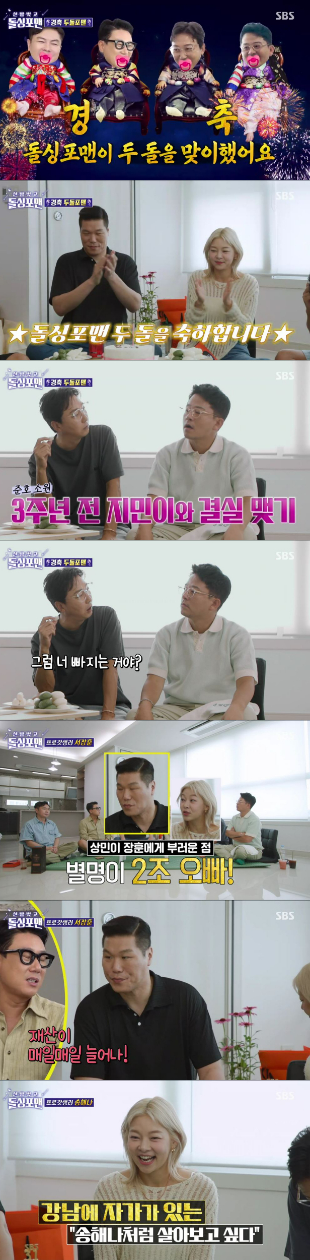 서장훈은 "이 프로그램이 이렇게까지 오래 할 줄 몰랐다"며 남다른 축하 멘트로 웃음을 안겼다. 이어 멤버들은 돌아가면서 2주년 맞이 소원을 이야기했다. 개그우먼 김지민과 공개 열애 중인 김준호는 "3주년 전에 지민이와 결실 맺기"라고 말했고, 탁재훈은 "그럼, 너 여기서 빠질거야? 일이야? 사랑이야?"라며 자극했다.