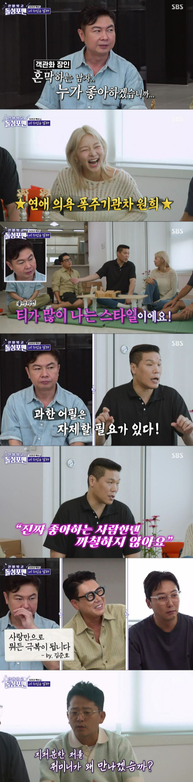 또한 서장훈의 '깔끔병'도 매력을 떨어뜨리는 이유라는 지적이 나오자, 서장훈은 "진짜 좋아하는 사람에겐 까칠하지 않다"고 누차 강조했다. 그러자 김준호가 "사랑만으로 뭐든 극복됩니다. 지저분한 저를 지민이가 왜 만나겠습니까?"라며 너스레를 떨어 모두를 웃게 만들었다.