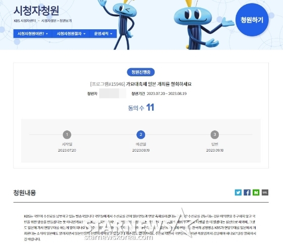 앞서 KBS가 '가요대축제 일본 반대' 청원에 대한 답변 후, 하루도 채 안 되어서 나온 청원이라 이목을 끈다. 해당 청원은 30일간, 1000명의 동의가 있으면 해당 부서가 30일 내 답변을 해야 한다.