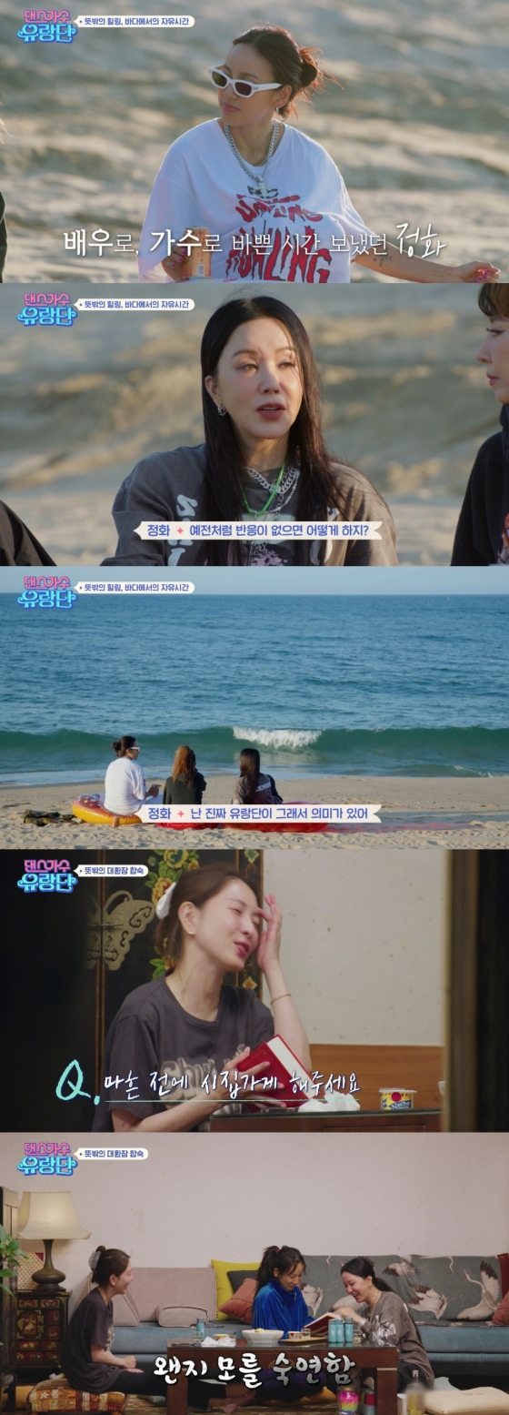 20일 방송된 tvN '댄스가수 유랑단'에서는 양양 바다를 바라보며 고민을 나누는 이효리, 엄정화, 김완선의 모습이 담겼다.