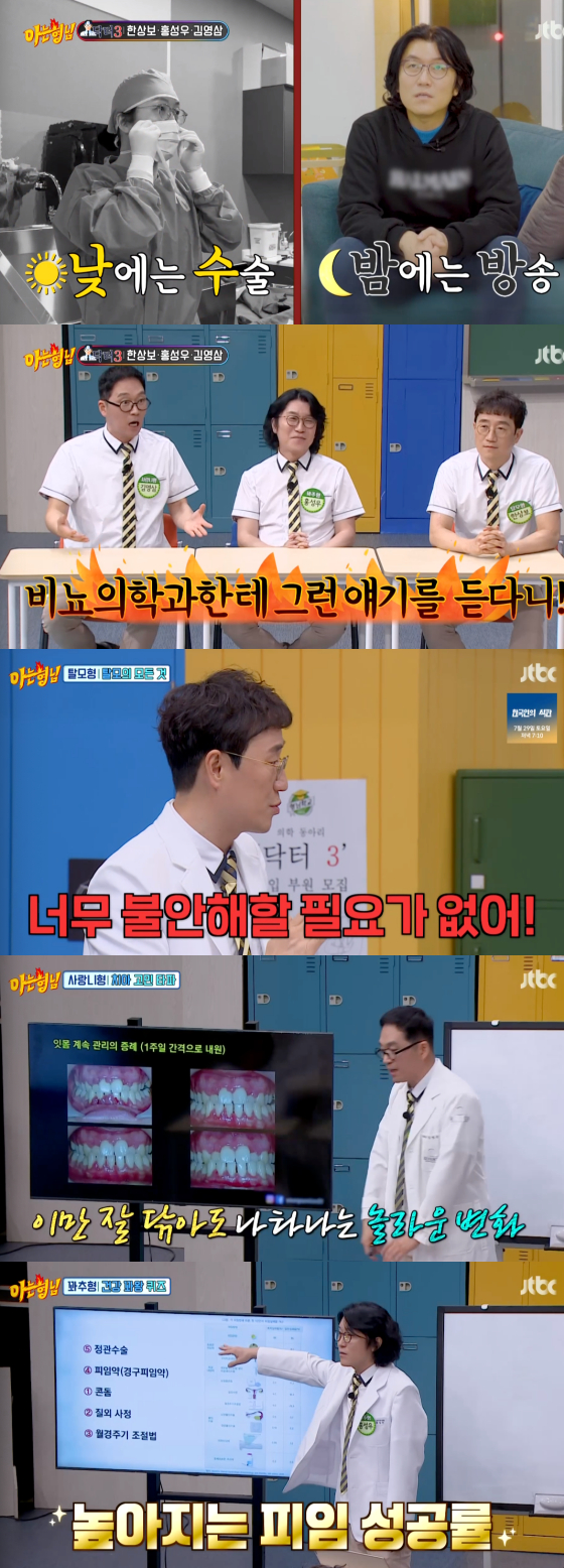 22일 방송된 JTBC 예능 프로그램 '아는 형님'에서는 탈모 전문가 한상보, 비뇨의학과 전문의 홍성우, 사랑니 전문 치과의사 김영삼이 출연했다.