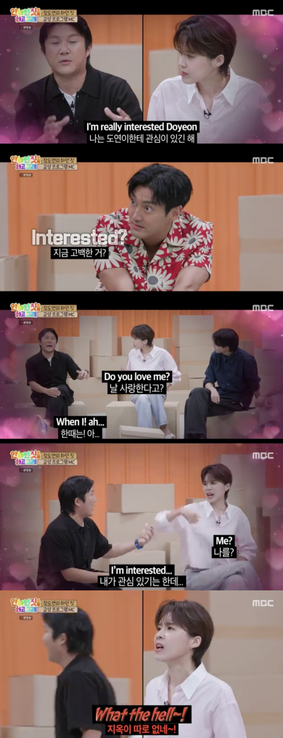 이에 놀란 MC들은 장도연을 사랑하냐고 물었고, 조세호는 "관심 있긴 한데"라며 말을 흐려 웃음을 자아냈다. 장도연은 이에 "나를?"이라 질색하며 "당장 나가라. 지옥이 따로 없다"고 버럭해 현장을 웃음바다로 만들었다.