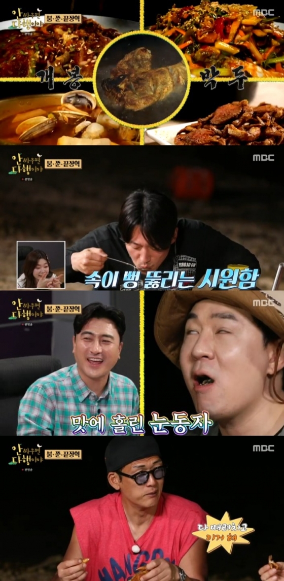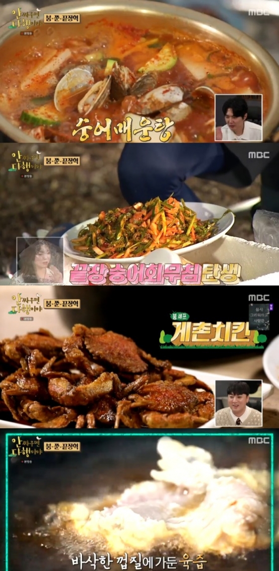 특히 박준형은 붐이 야심차게 만든 '게촌치킨(박하지 튀김+치킨 양념)' 맛에 "진짜 맛있다. 다 때려치우고 이거해라"며 칭찬을 쏟아냈다.