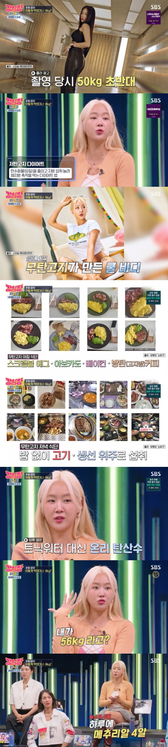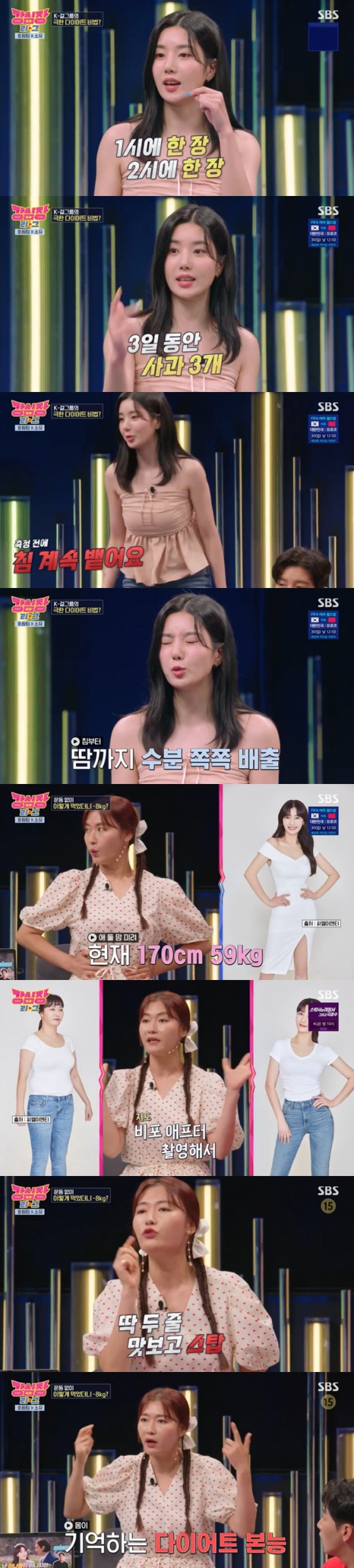 25일 방송된 SBS '강심장리그'에서는 소유와 권은비가 자신의 다이어트 방법을 공개했다.
