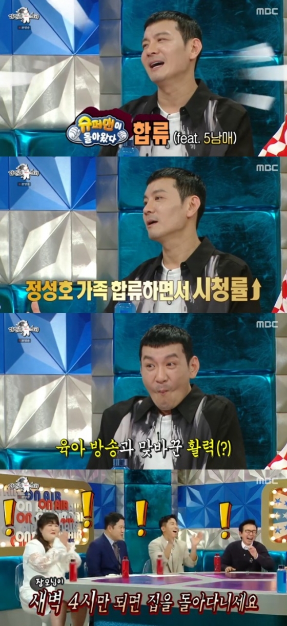 이날 방송에서 정성호는 "되게 좋았던 게 제가 가면서 ('슈퍼맨이 돌아왔다') 시청률이 4%가 넘었다. (5남매이기 때문에) 스토리가 많지 않냐"며 운을 뗐다.