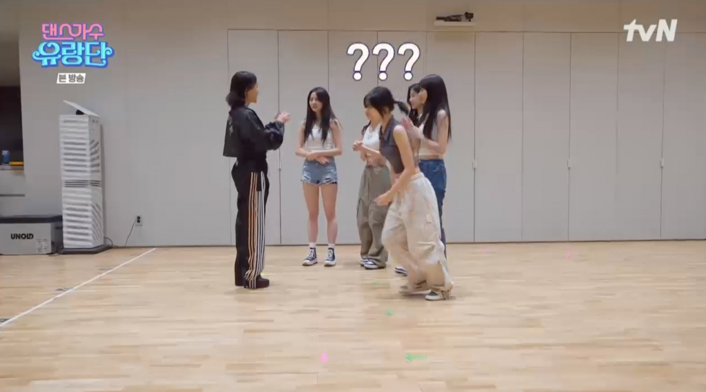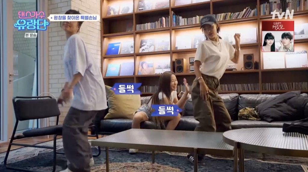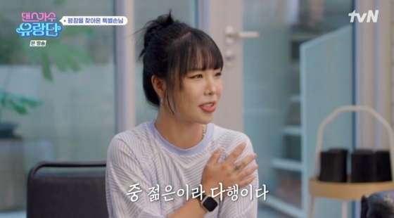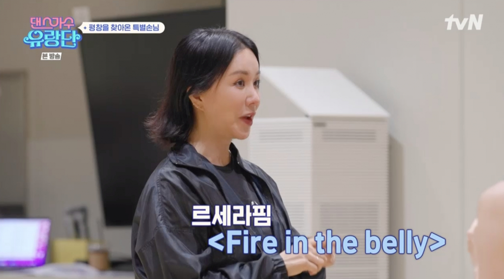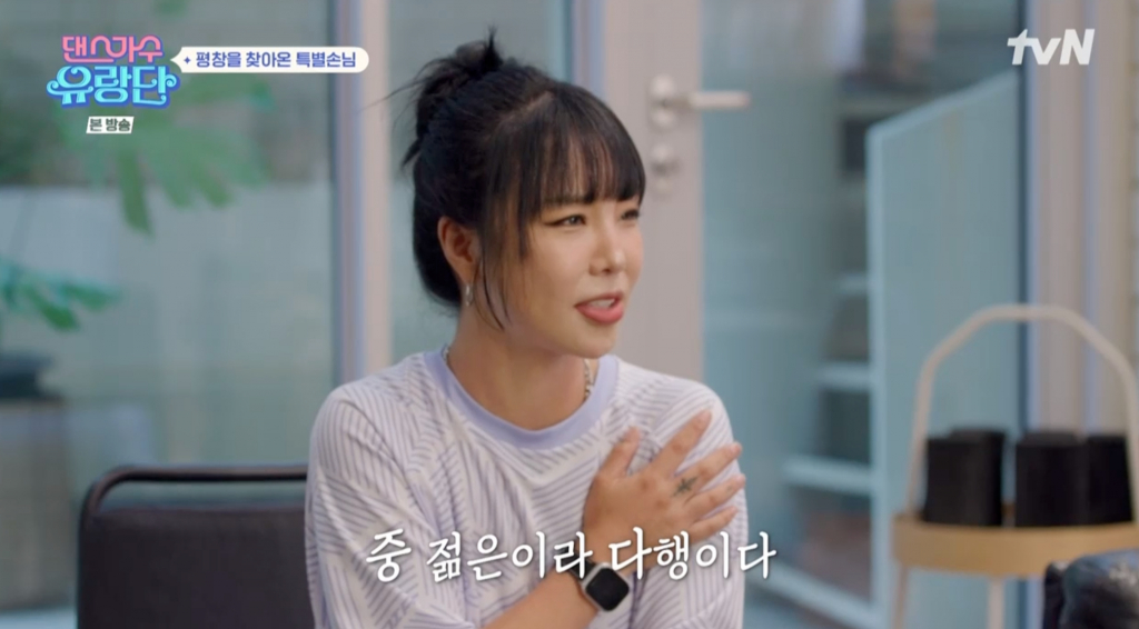 김완선은 "내 무릎이 아픈 것 같다"라고 걱정했고 화사는 "처음에 춤 배울 때는 보호대 차고 했는데 계속하게 되면 안 차게 됐다"라고 말했다.