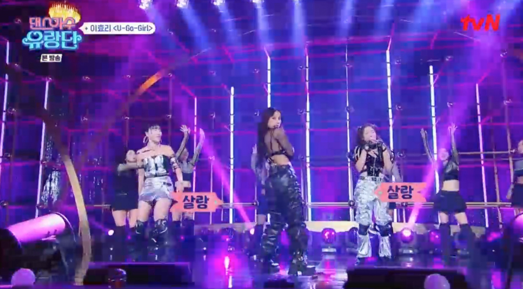 이효리는 2023년 버전의 'Hey Mr. Big' 무대를 완벽하게 소화한 데 이어 'U-Go-Girl' 무대도 퀸와사비와 키디비와 함께 무대를 완성했다. 이효리는 트월킹으로 존재감을 뽐낸 퀸와사비와 키디비로부터 "빵댕이 흔들 시간"이라는 애드리브를 듣고 "이제 언니는 흔들 빵댕이가 없어"라고 유쾌하게 받아치며 웃음도 자아냈다.