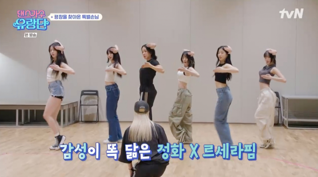 엄정화는 "같이 만나게 돼 너무 기쁘다"며 강원도 무대에서의 컬래버레이션을 제안했고 르세라핌도 흔쾌히 응했다. 이후 이들은 안무를 함께 맞췄다.