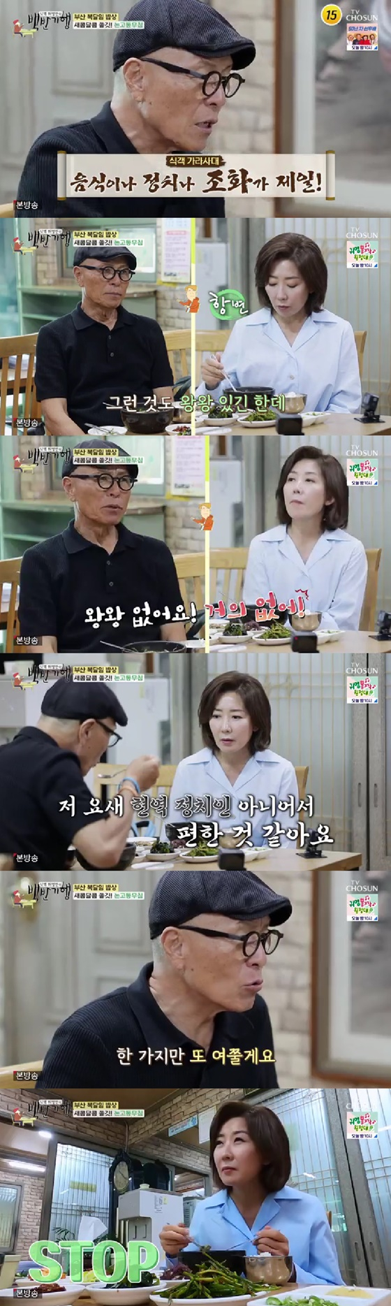 28일 방송된 TV조선 '식객 허영만의 백반기행'에서는 추어탕을 먹으러 부산에서 만난 허영만과 나경원의 모습이 그려졌다.