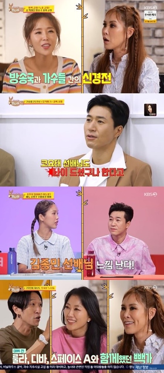 이후 코요태는 1990년대 당시 엄격했던 방송 심의에 대해 이야기를 나눴다. 신지는 염색 금지였던 사실을 말하며 "방송국과 가수들의 신경전이 있었다. 유독 심한 방송국이 있었는데, 거기가 여기네(KBS)"라며 열변을 토했다. 연예인의 복장 규제도 엄격했던 사실을 되짚으며 이야기를 이어간 코요태는 "과격한 춤 동작 금지도 있었다" 등 목청을 높였다.