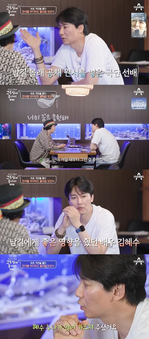이날 김남길은 "어떻게 하다 배우가 됐나"라는 고두심의 질문에 "원래는 무대 예술이 좋아서 연극을 하기 시작했다"며 "20대 초반 어릴 때니까, 30~40대 선배님도 고등학생 역할을 할 때니까 내가 할 수 있는 역할이 별로 없었다"고 말문을 열었다.