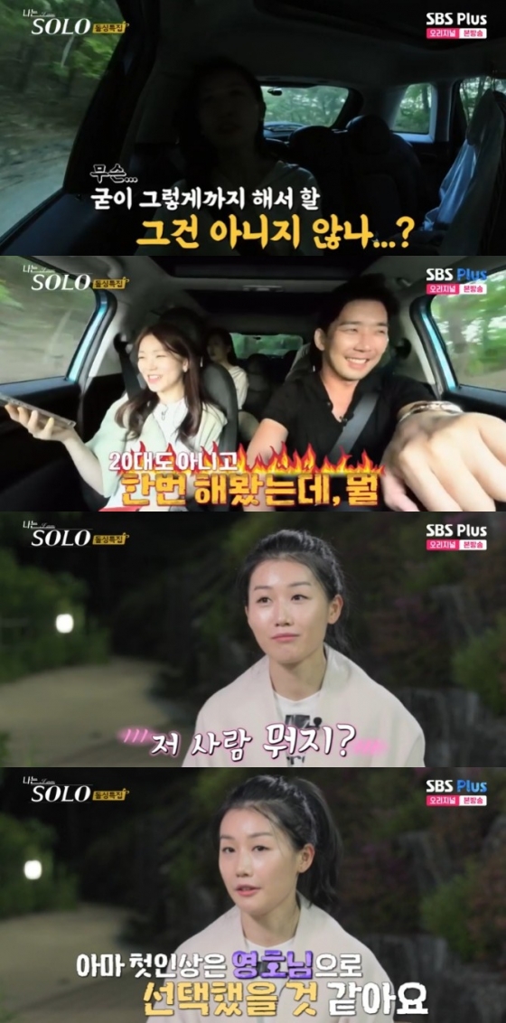 이날 방송에서 순자는 영수가 운전하는 차 안에서 "여기선 잠을 못 잔다고 하더라. 잠을 자면 밤사이에 우리가 모르는 일들이 일어난다고 하더라. 짝지가 바뀌고"라며 분위기를 풀기위해 입을 열었다.