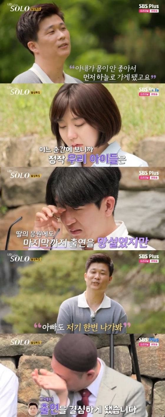 이어 그는 "아이들이 6살, 4살 때 그때 처음 발병사실을 알게 됐고 그 후로 4년 좀 넘게 투병 생활 하다가 먼저 가게 됐다. 처음에는 이 어린 아이들과 어떻게 살아야 되나, 막막하고 눈물이 났다. 그렇게 좀 힘들 날을 보내다가 어느 순간에 보니까 정작 우리 아이들은 너무 씩씩하게 잘 하고 있었다. 사실 여기 지원하게 된 계기도 '딸이 아빠도 저기 한 번 나가봐'라고 하더라. 여기 나가는 게 맞나 고민을 많이 했는데 아이들이 '아빠 뭘 고민해. 당연히 나가야지. 나가서 좋은 여자 친구 만났으면 좋겠어'라고 하더라. 그래서 출연을 결심하게 됐다"며 프로그램 지원 이유를 밝혔다.