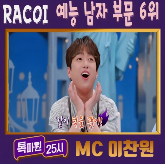 가수 이찬원이 RACOI 지수 남성 예능 출연자 톱6에 오르며 인기를 빛냈다.