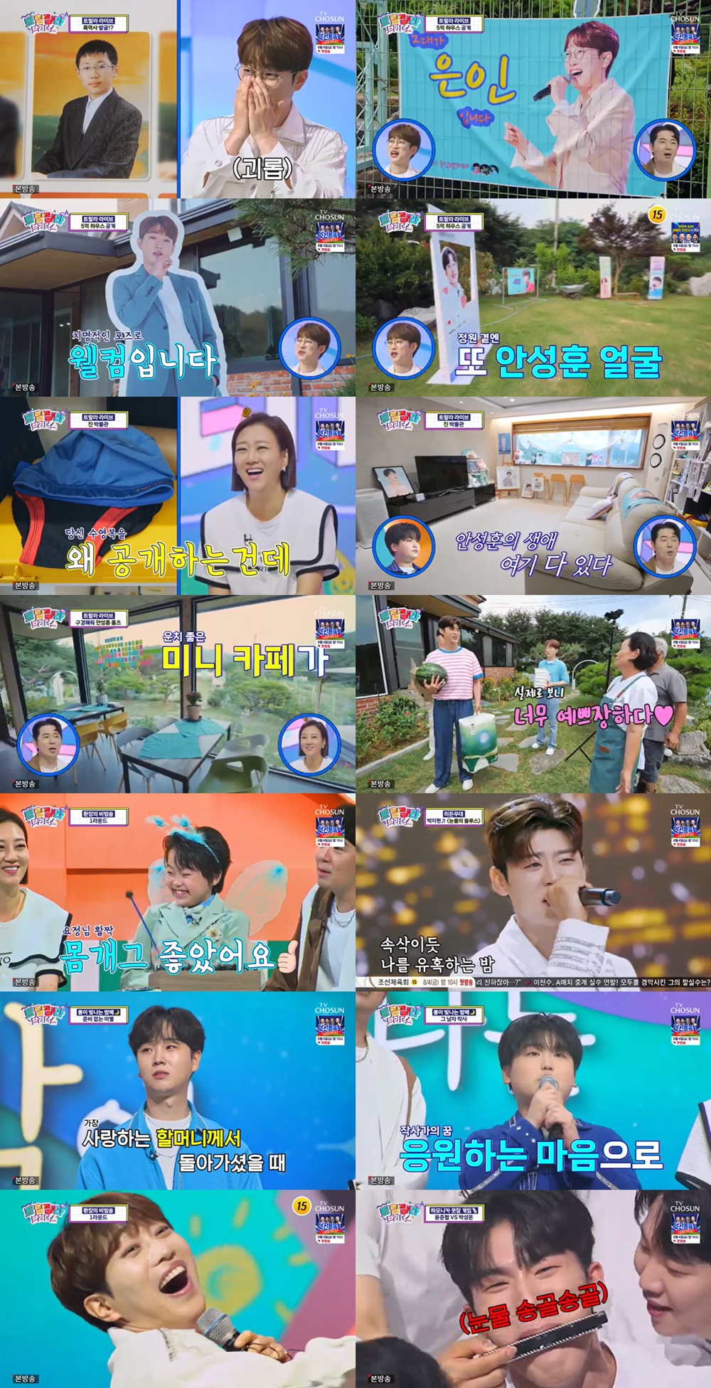 이날 방송에서는 안성훈의 안성 집 방문기가 그려졌다. 안성훈은 뽕팀 박지현, 최수호, 윤준협과 자신의 안성 전원주택을 찾아 방송 최초로 집 내부를 샅샅이 공개했다. 역대급 흑역사 공개부터 박물관급 집 스케일이 시청자들에게 웃음과 놀라움을 함께 선사한 한 회였다.