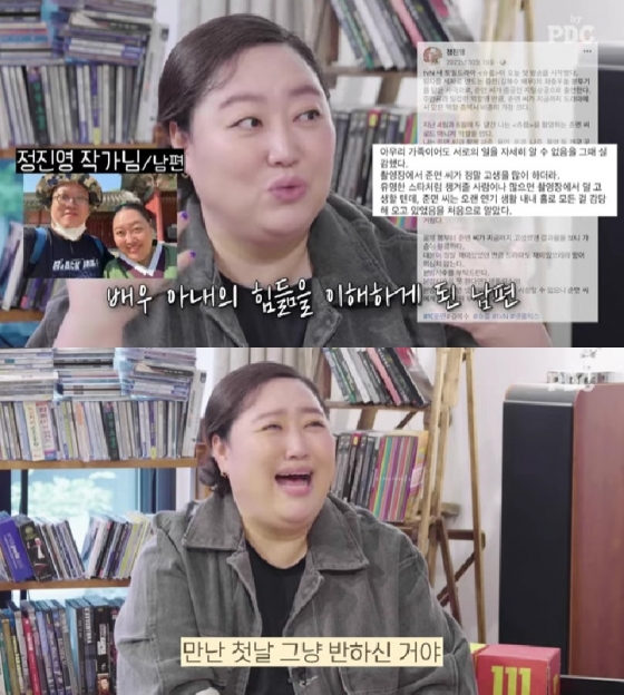 "가장이기 때문에 모든 작품을 안 가리고 하고 있다"고 밝힌 박준면은 "남편은 작가고, 책은 아직 현금화가 안 됐다"고 웃었다. 그는 남편과의 러브스토리를 밝히기도.