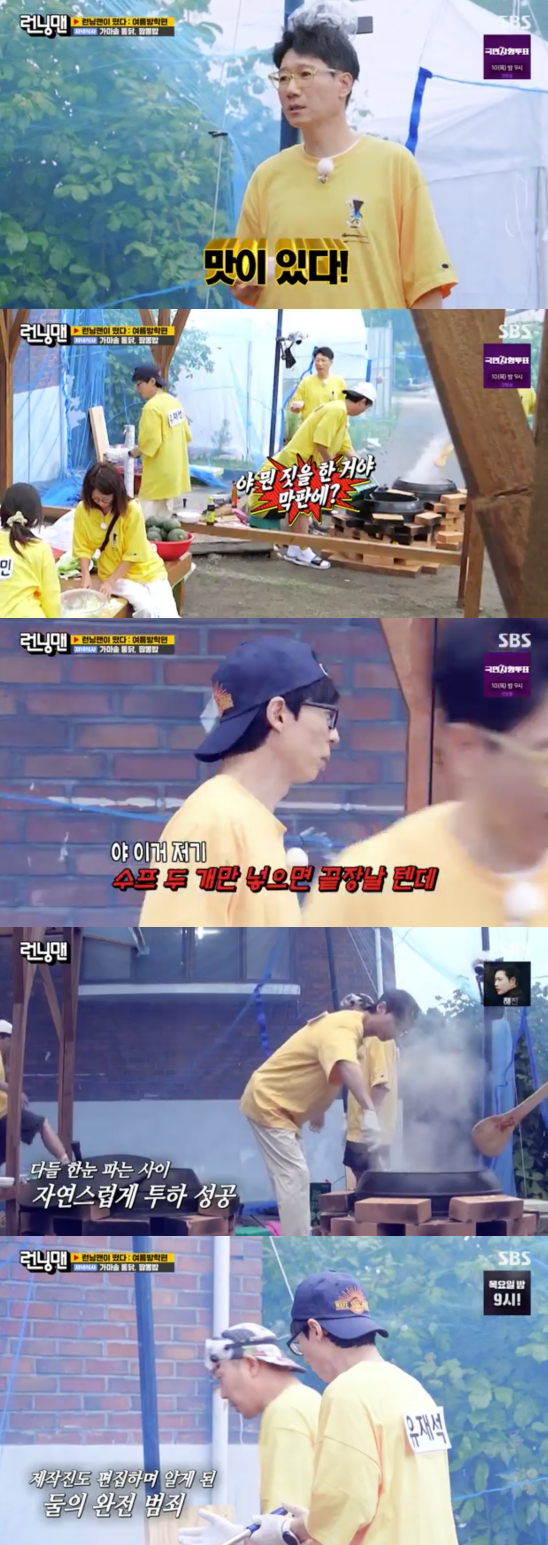 이날 멤버들은 가마솥 통닭과 해물 짬뽕에 도전했다. 유재석은 짬뽕을 맡겠다더니 "해산물 스탠바이"를 격하게 외치며 감독으로 돌변해 웃음을 자아냈다. 또 유재석은 "최초로 라면수프 안 쓰고 완성하겠다"고 자신해 기대감을 모았다.
