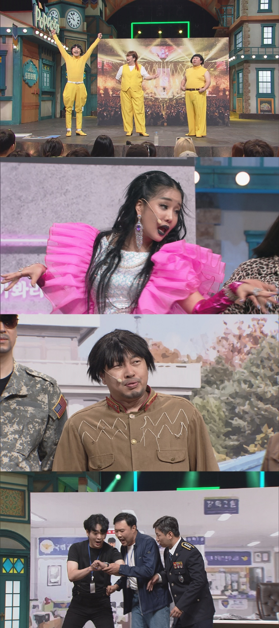 '공동경비구역 JSA' 이진호는 상상을 뛰어넘는 공화국 흠뻑쇼를 공개하고, '에바랜드'에서는 홍윤화가 팬더로 변신해 이상준과 케미스트리를 뽐낸다. 이날 첫 선을 보이는 '경찰청 사람들' 코너에는 김용명, 김병욱, 이정수, 나보람이 의기투합, 좌충우돌 수사기로 배꼽 빠지는 재미를 선사할 전망이다.